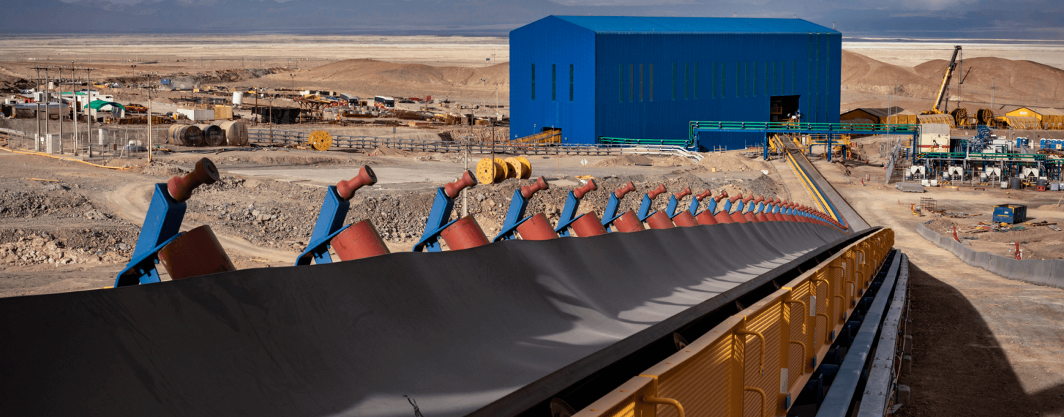 Correa de transporte de mineral en superficie.