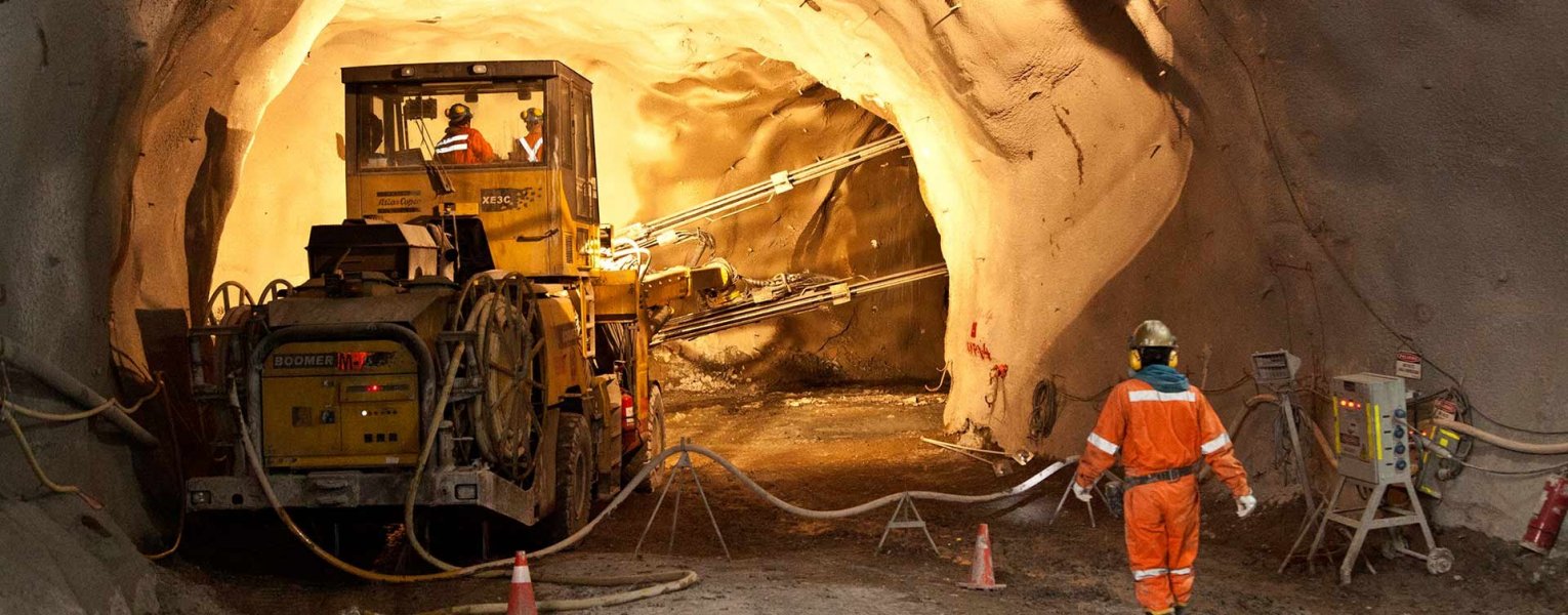 Trabajador al interior de la mina subterránea.