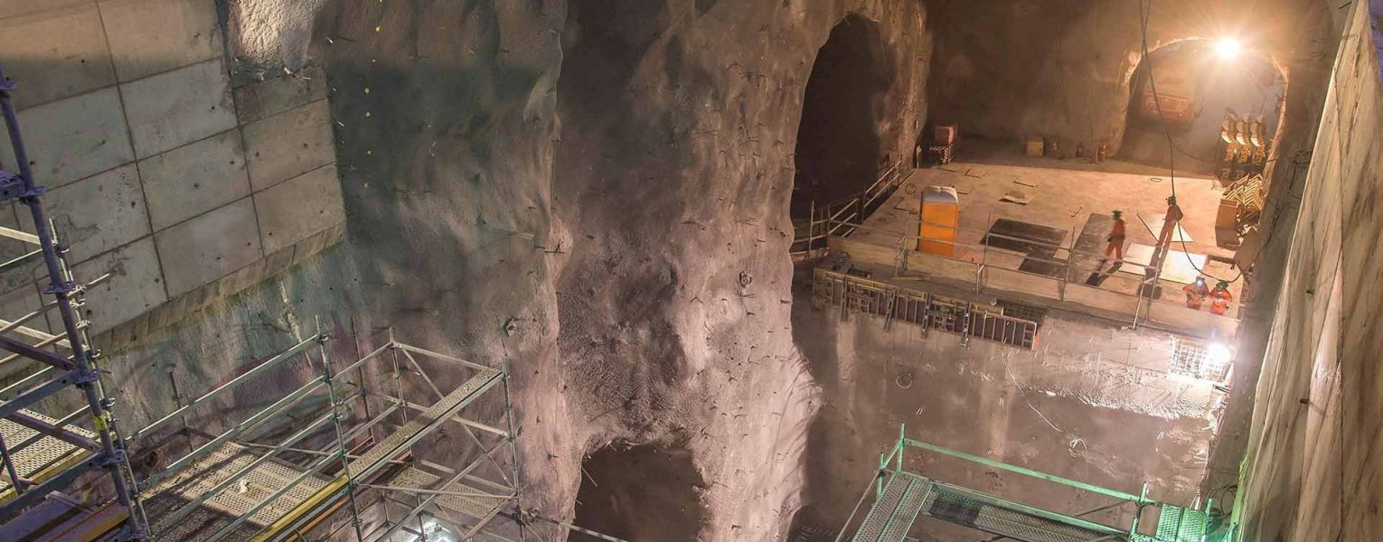 Obras de montaje de un pique de chancado al interior de la mina.