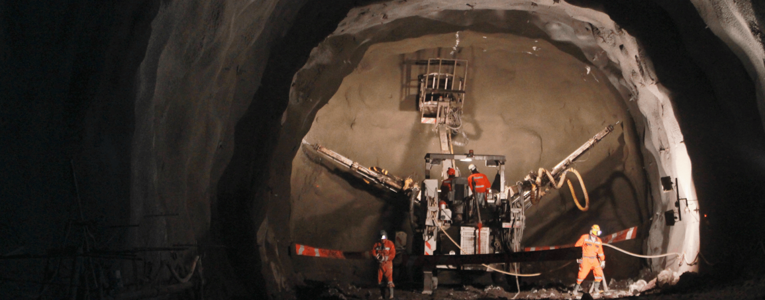 Jumbo realizando perforaciones en un frente de la mina El Teniente.