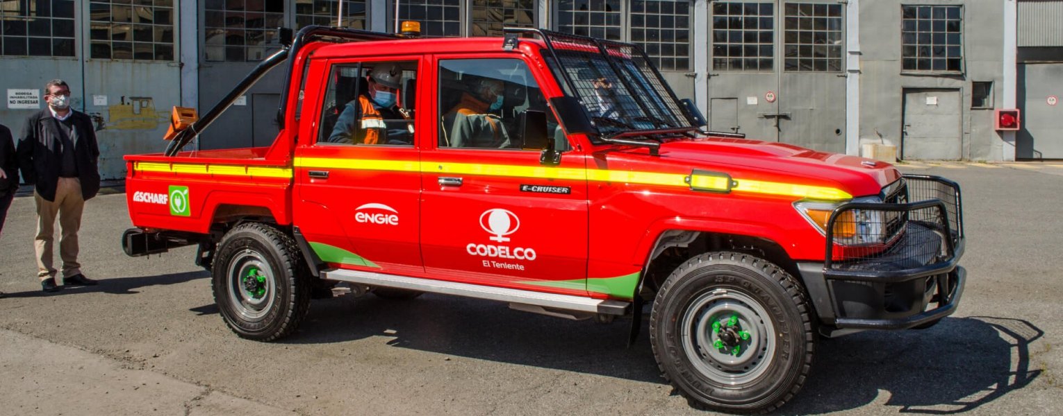 Camioneta 100% eléctrica presentada en División El Teniente, parte de los proyectos de Codelco para avanzar hacia una minería más sustentable.