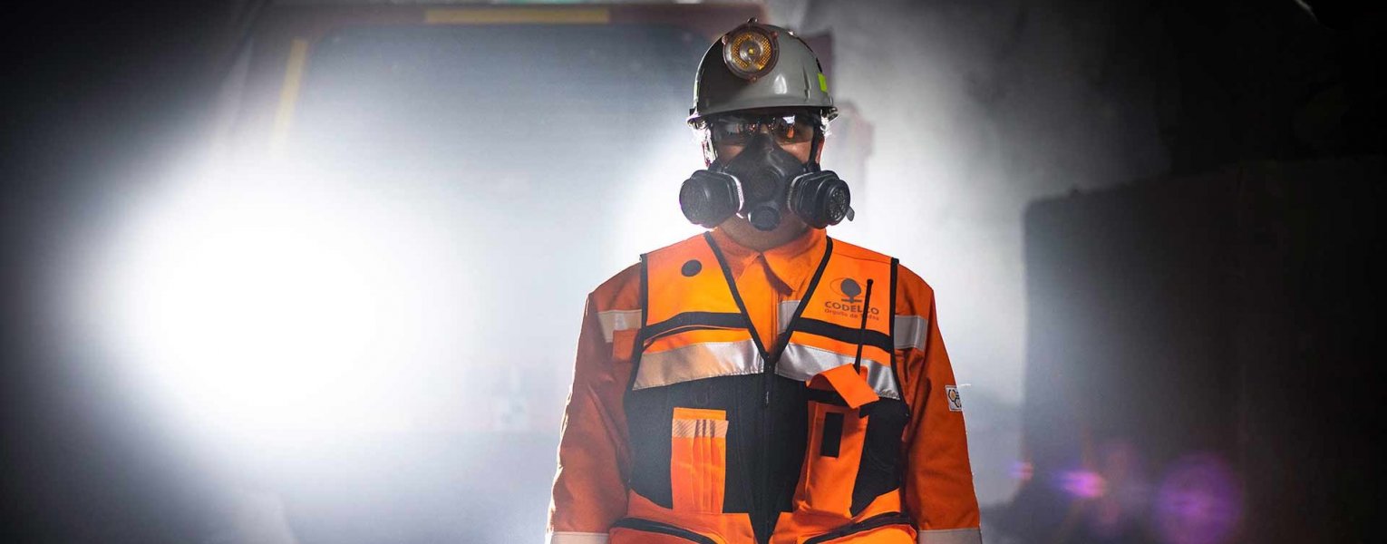 Trabajador al interior de la mina subterránea.