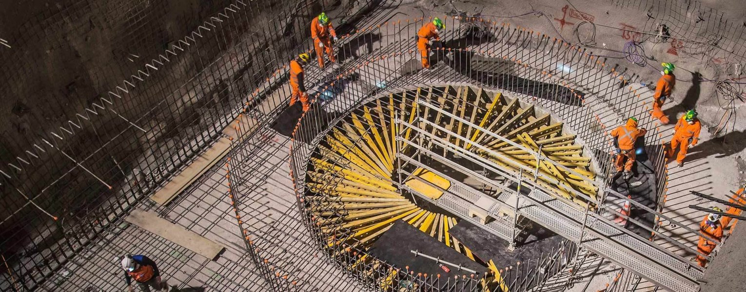 Obras de montaje de un pique de chancado al interior de la mina.