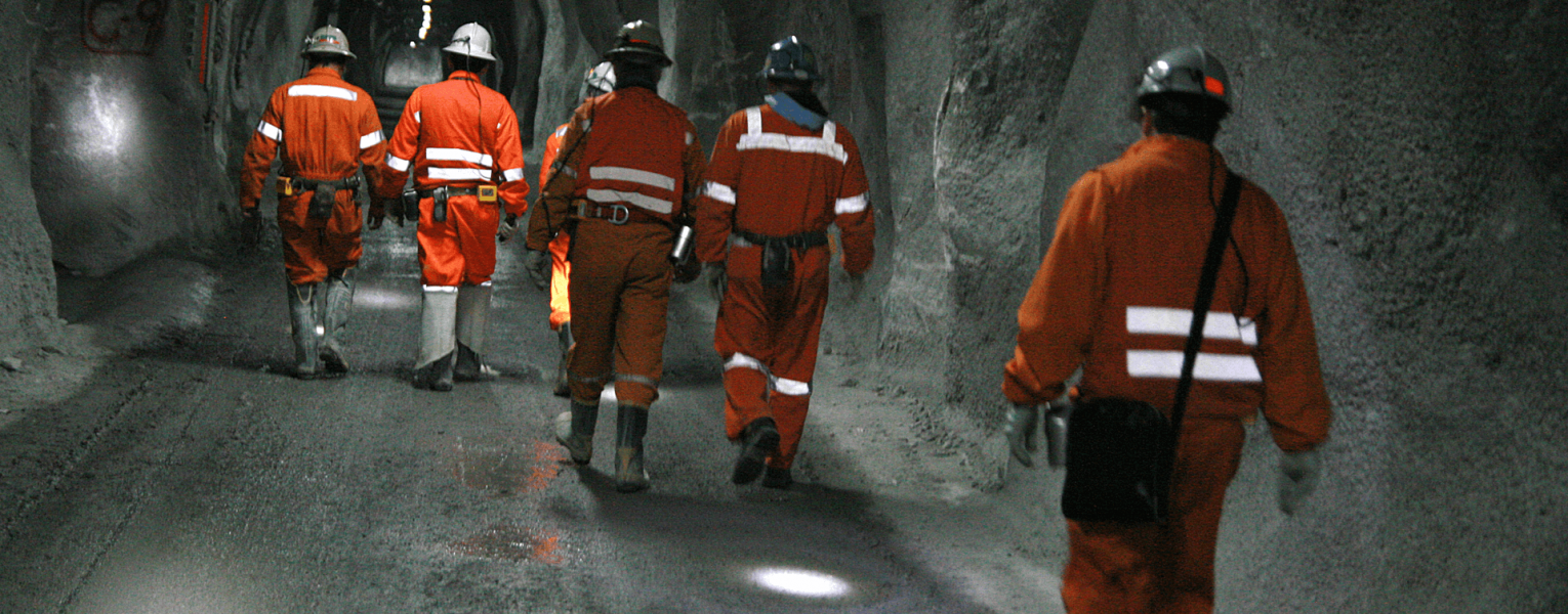 Trabajadores transitando por la mina subterránea de El Teniente, la más grande del mundo en su tipo, con alrededor de 4.500 kilómetros de túneles.